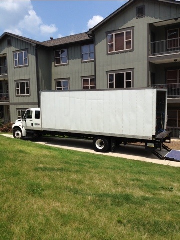 This picture below shows the truck backed down a sidewalk, for loading. at the Hayden Place Apartments in Chattanooga, TN. The customer was moving from a 3rd floor walkup in Chattanooga, TN to a 5th floor loft with elevator in the “Ice House Lofts” in Decatur, GA.