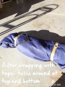 In the event there was no lamp box available—and the lamp box is one of the less commonly available type of boxes—then a tall wardrobe box could have been used, but no other inventory items could be placed in the box! (I don’t think I would use hanging clothes as padding next to the ceramic lamp, but it is an interesting idea. If I didn’t have styrofoam peanuts, or newsprint, or pads, then I might use hanging clothes