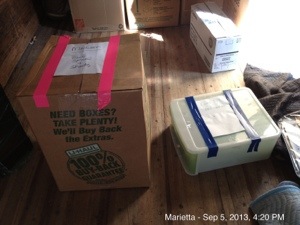 And the empty area in the box would have to be filled with something. You could use a lot of styrofoam “peanuts,” or newsprint, or quilted pads. (The Mover would want to get his pads back at the destination, or else charge for them)
