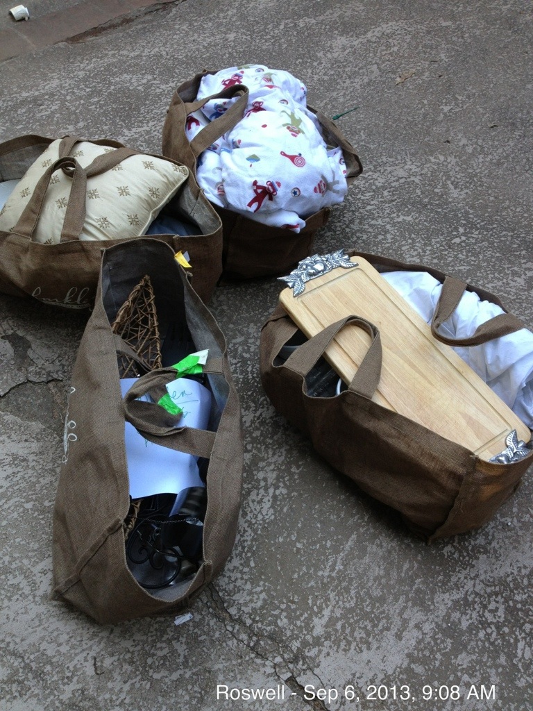 The New York movers had packed this tall, ceramic lamp pictured above–in a wardrobe box—and here’s the sad part—they surrounded the fragile lamp with heavy books!